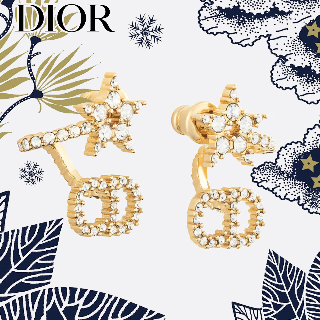 曲線を描いたスターモチーフが耳を包み込み、その先でCDイニシャルが耳元を彩る「Clair D Lune (クレール ディー リュヌ)」ピアス。クリスタルとゴールドトーンメタルの優雅なコントラストが、耳元に洗練されたエレガンスを添えます。