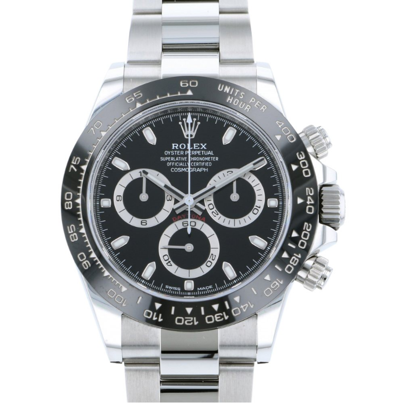 デイトナ クロノグラフの機能は、使用しない間にはリューズのようにねじ込まれ、100mまでの防水性を確保するプッシャーにより作動する。クロノグラフ機能のスタート、ストップ、リセットを押すと、最新 テクノロジーにより完成の域にまで到達された、カチっとした鋭い音が響く。 ロレックスの時計技師はまた、プッシャーを押した時に指に最高の感触が与えられるよう、そして時計の精度に影響を与えずに瞬時に、そして正確に計測が開始されるよう、機構に最高の技術力を 投じた。